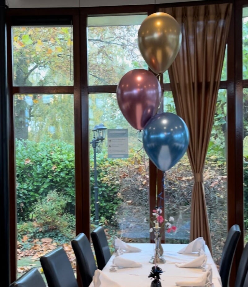 | Tafeldecoratie met 3 ballonnen | € 12,00 met hi float € 13,50 |